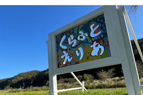 Kawabe Yūwa is often referred to as the “Craft Area,” as many artists live and work here. In a local square, a sign created with local elementary school children reads “くらふとえりあ” (Craft Area) in colorful Japanese characters, and it stands as a symbol of the community.